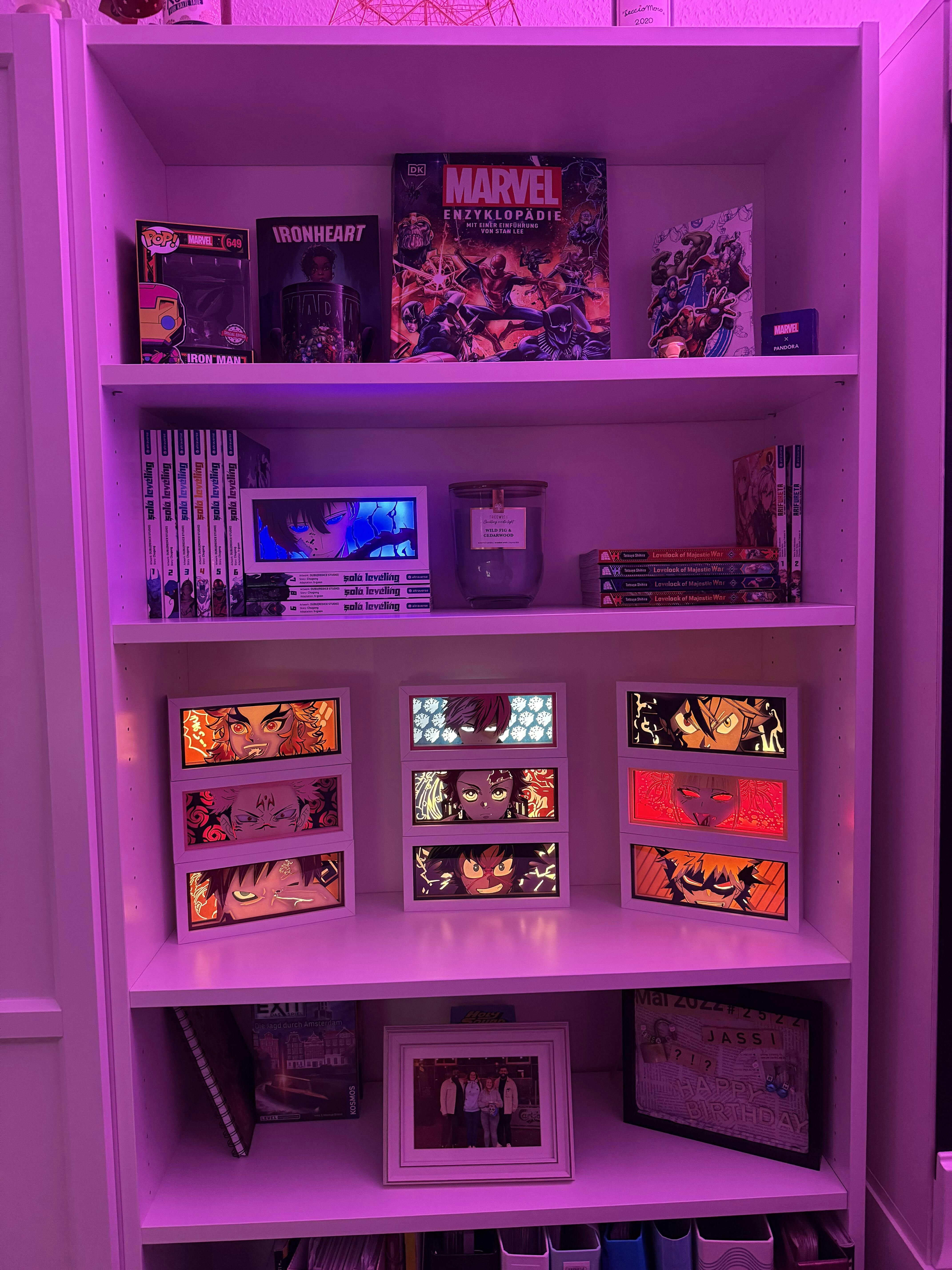 Elevate your manga figures and posters with glowing backlight for the ultimate display.